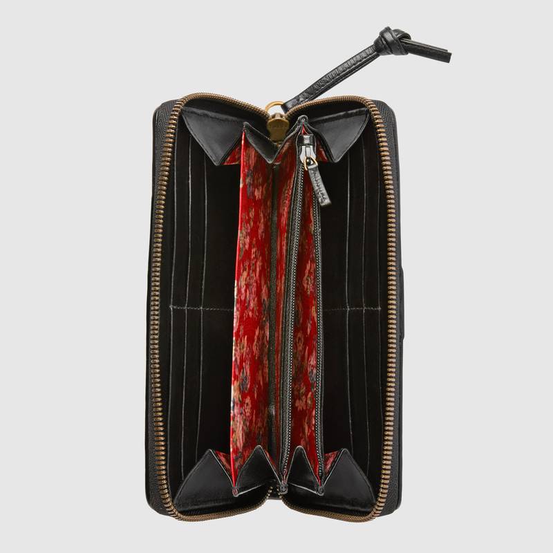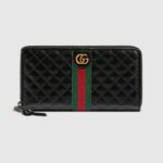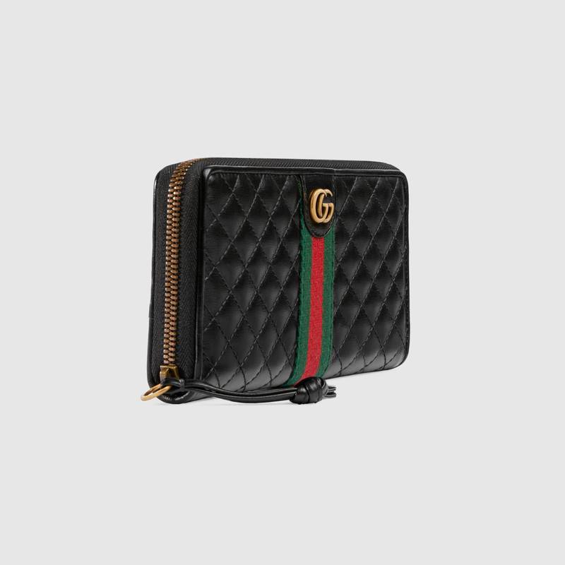 536450 GUCCI钱夹 饰双G皮革 红绿织带 全拉链长款钱包 黑色