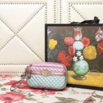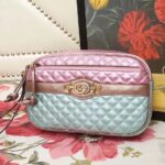 540985 GUCCI 2018早秋 微粒珠光小羊皮 拼色小方包 粉拼绿