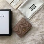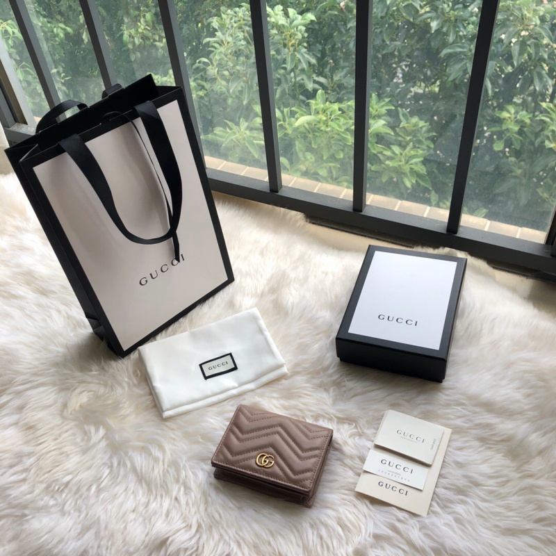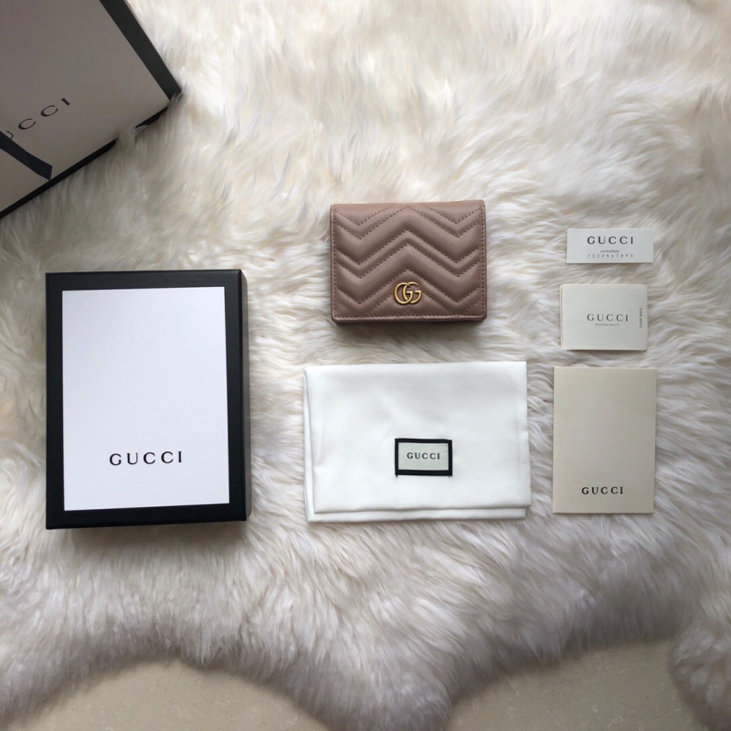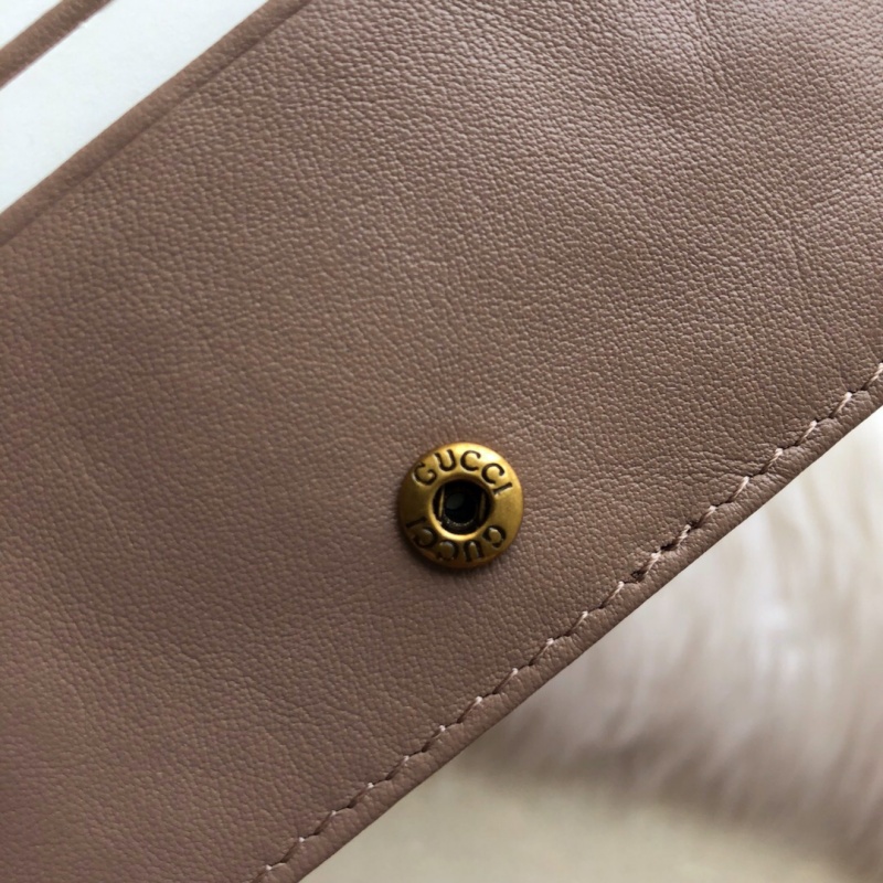 546580 Gucci GG Marmont绗缝V型皮革小号钱包 裸色