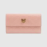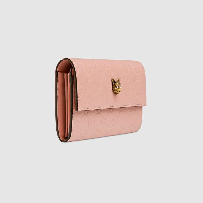 - 548055 Gucci Signature系列 压印皮革 猫头图案 长款钱包 粉色