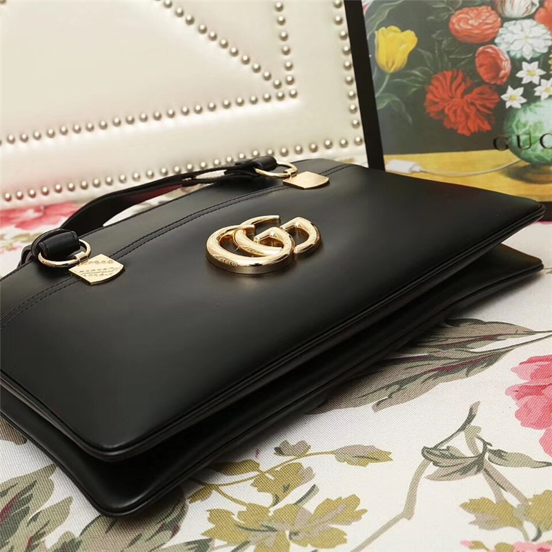 - 550130 Gucci Arli系列 大号 双G徽标 复古手提包 黑色