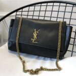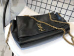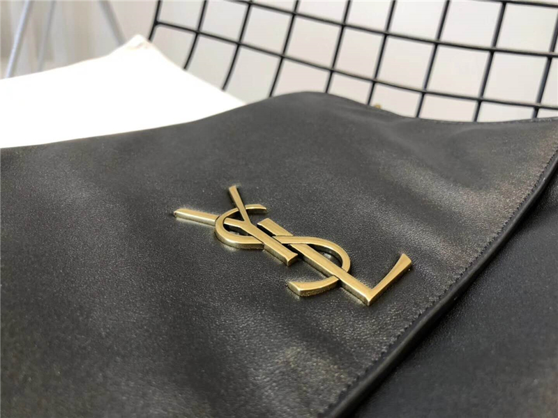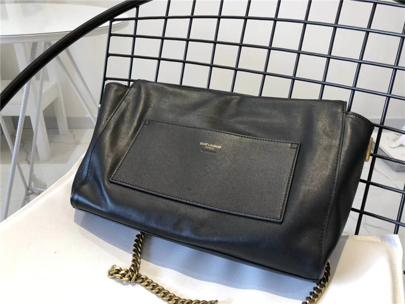 - 553804 YSL女包 绒面拼皮 两面可翻 YSL链条包 柔软皮 圣罗兰单肩斜挎包 黑色