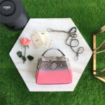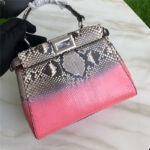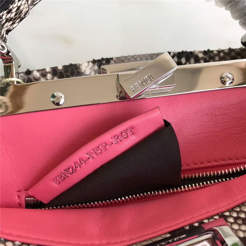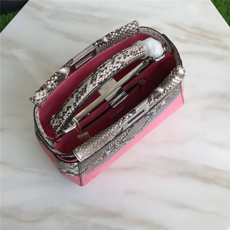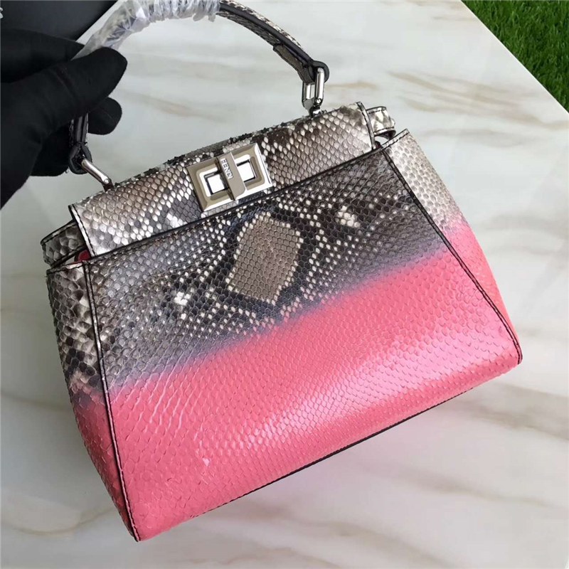 5590 FENDI 芬迪 蟒蛇皮 丝印手提包 两个内袋 金属配件 粉色
