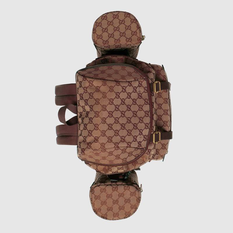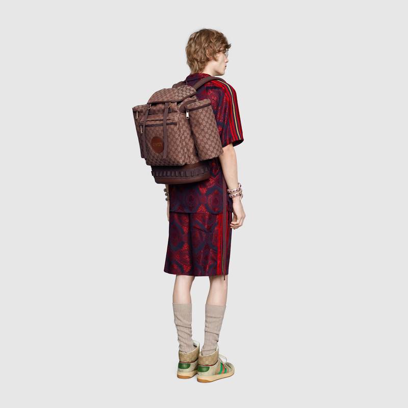 - 562911 Gucci男士背包 花卉图案 天鹅绒 丝线提花 大号 古驰双背包 深啡色