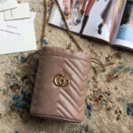 - 575163 Gucci GG Marmont系列迷你水桶包 Gucci圆筒包 灰粉色
