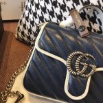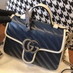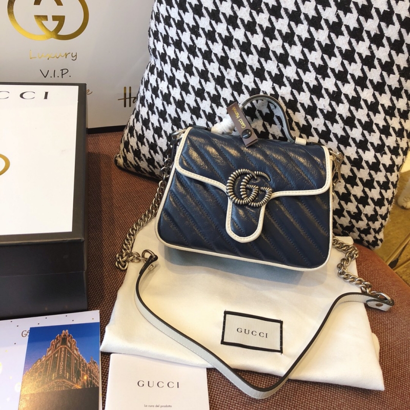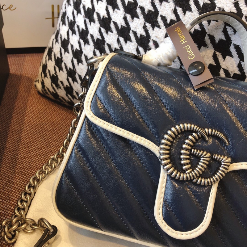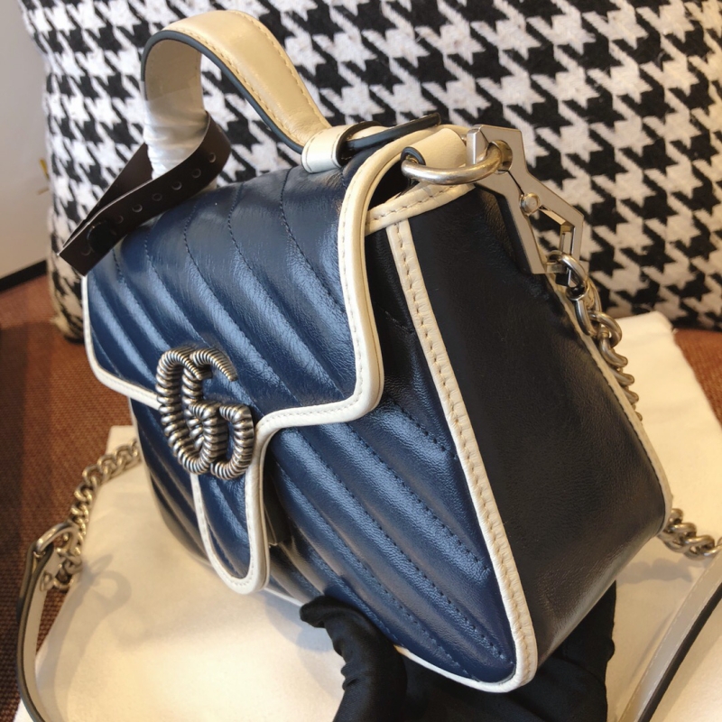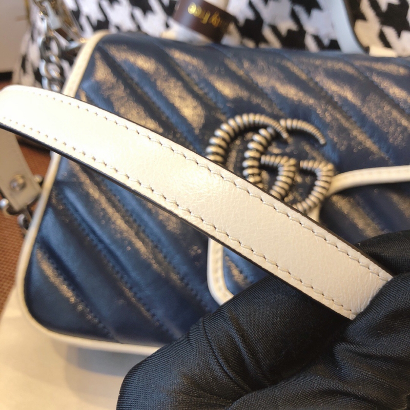 - 583571 Gucci GG Marmont 系列迷你手提包 斜纹绗缝皮革女包 蓝色
