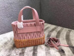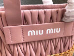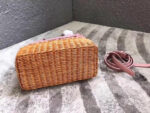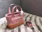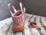 - 5BA076 MIUMIU专柜新款 小羊皮 编织柳条 方形桶包 粉色