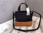 - 5BA076 MIUMIU专柜新款 小羊皮 编织柳条 方形桶包 黑色