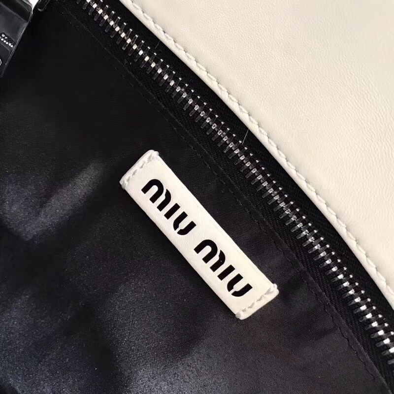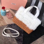 - 5BA076 MiuMiu女包 谬谬手提包 羊羔毛手袋 编织竹蓝底 菜蓝子包 白色
