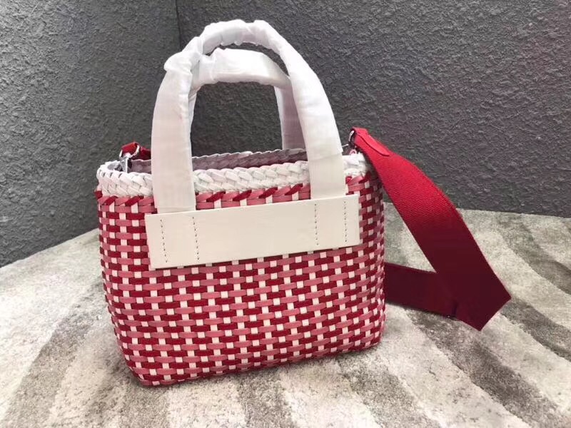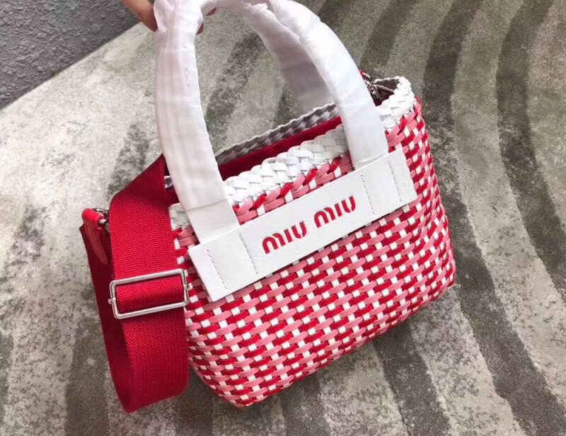 - 详细介绍:缪缪专柜新款编织菜篮子包,5BA077,釆用进口超纤人造革,纯手工编织,做工十分复杂,小牛皮双手腕带,正面小牛皮丝印logo标志,可调节可拆卸宽肩带,绵缎内里,一个内部夹层,一个拉链内袋,萌趣可爱