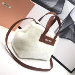 5BA085 MiuMiu女包 缪缪手提包 羊皮革提手 羊羔直毛手袋 白色