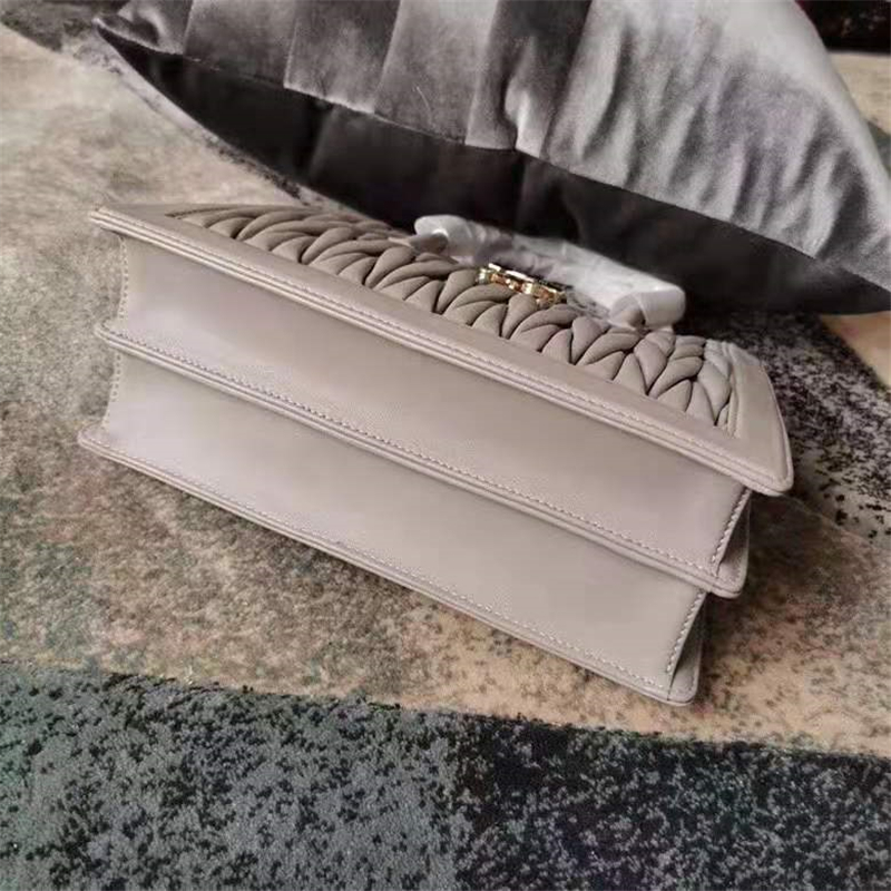 • 5BA126 MiuMiu专柜新款 小羊皮 翻盖锁扣 缪缪手提斜跨包 浅灰