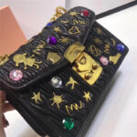 - 详细介绍:谬谬专柜最新爆款肩背包,Matelasse顶级进口小羊皮,正面仿水晶彩石贴花扣金色金属贴花装饰,奢华靓丽,设计超美,不可拆卸金属链条拼接皮革肩垫长肩带,按锁开合翻盖,绸缎衬里,两个隔层,一个配拉链和一个配小号皮革手机袋…
