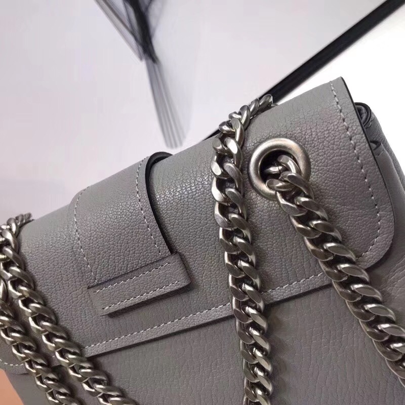 - 结构:缎面衬里,带按锁的翻盖,双内部隔层,一个拉链袋和一个手机袋,金属链条肩带,配皮革肩垫