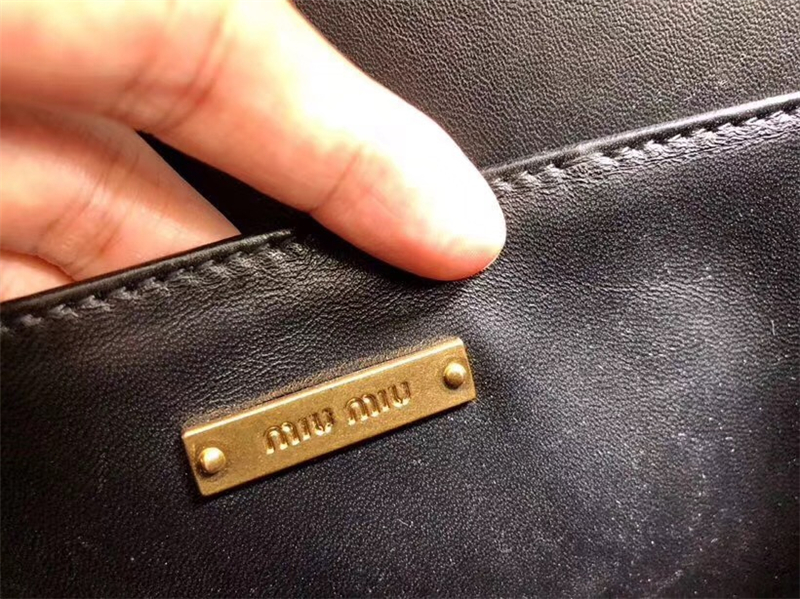 5BD109 MIUMIU 专柜新款 水钻装饰 进口小羊皮 链条肩包 黑色