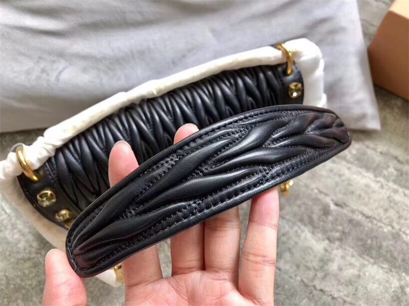 - 5BD109 MIUMIU 专柜新款 水钻装饰 进口小羊皮 链条肩包 黑色