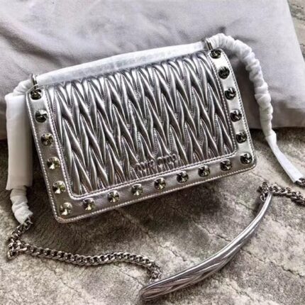 - 详细介绍:缪缪专柜新款小包,原版顶级进口Matelasse小羊皮材质,皮质柔软细腻,包身周围水钻装饰,链条与皮拼接长肩带,正面miu logo标识,翻盖吸扣开合,一个隔层内袋,简约时尚!