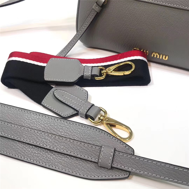 5BD113 MiuMiu女包 缪缪手袋 翻盖锁扣 进口山羊皮肩包 灰色