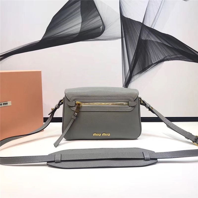 - 5BD113 MiuMiu女包 缪缪手袋 翻盖锁扣 进口山羊皮肩包 灰色