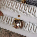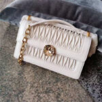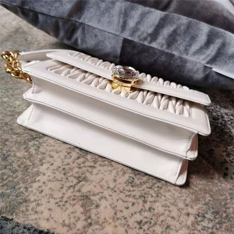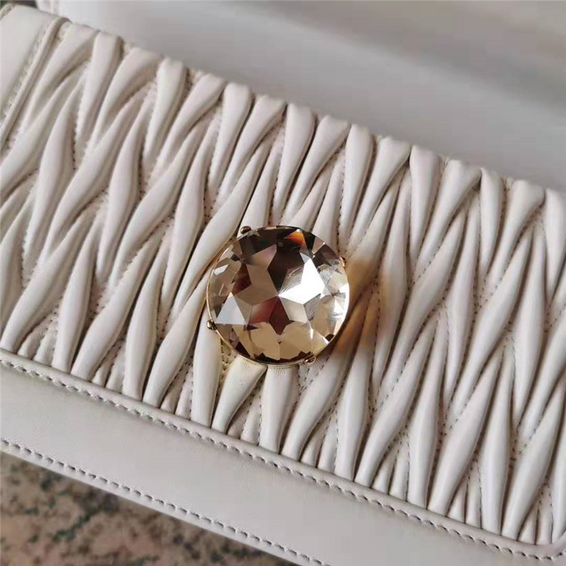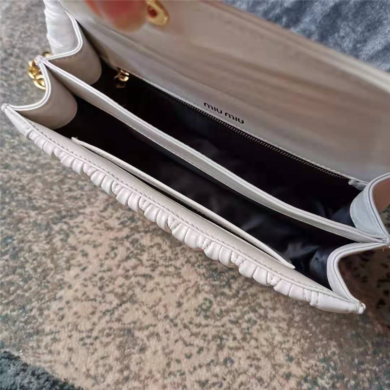 - 5BD130 MiuMiu专柜新款 提花压纹 羊羔皮 缪缪链条包 米色