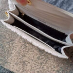 - 结构:旋转暗扣的翻盖开合,内里双隔层,带拉链内袋,金属链条长肩带