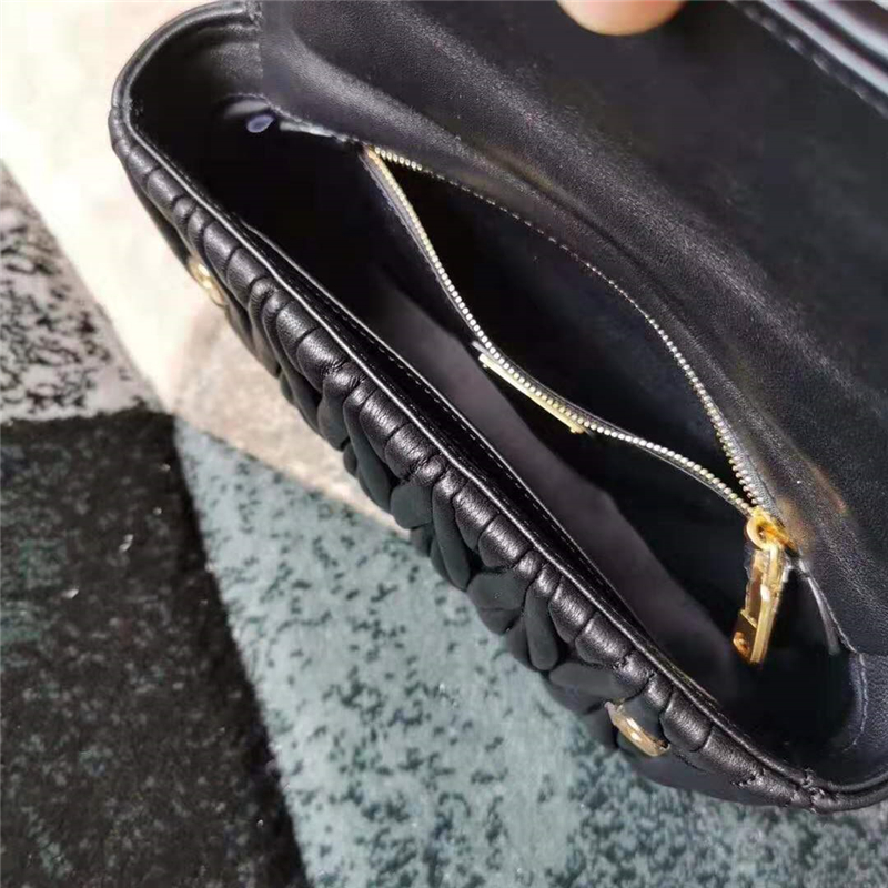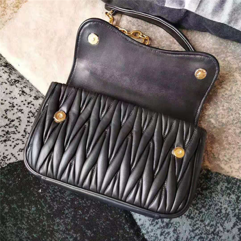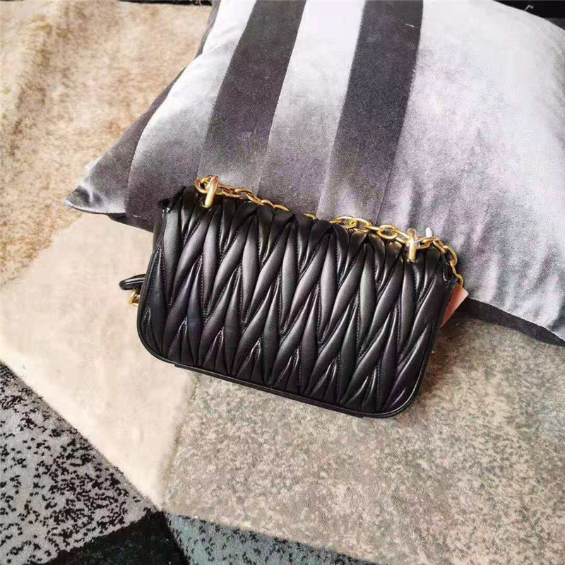- 5BD140 MiuMiu缪缪 Matelasse小羊皮 褶皱压纹 翻盖链条包 黑色