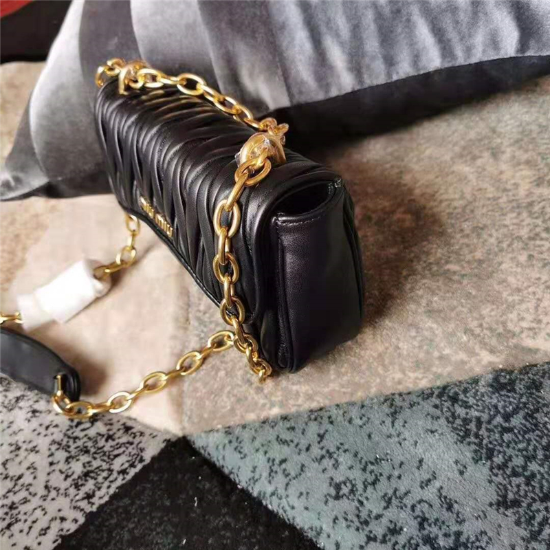 5BD140 MiuMiu缪缪 Matelasse小羊皮 褶皱压纹 翻盖链条包 黑色
