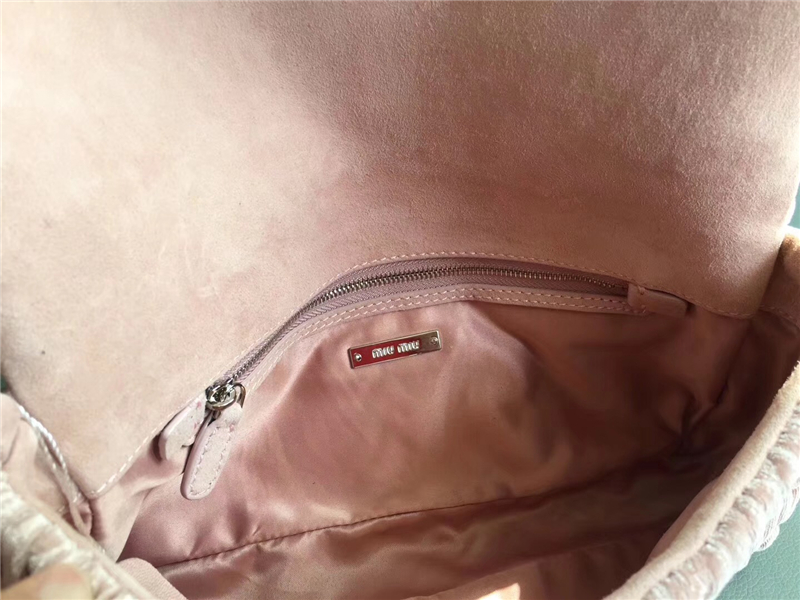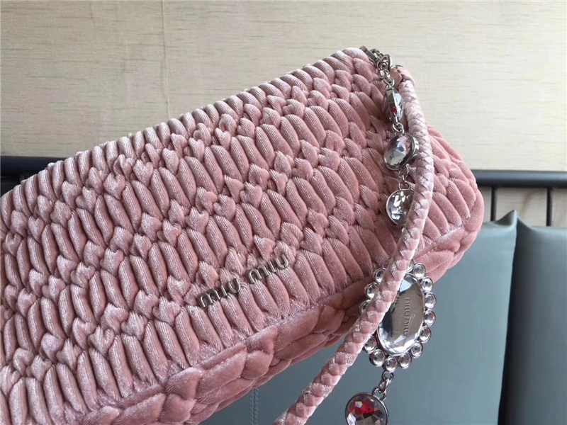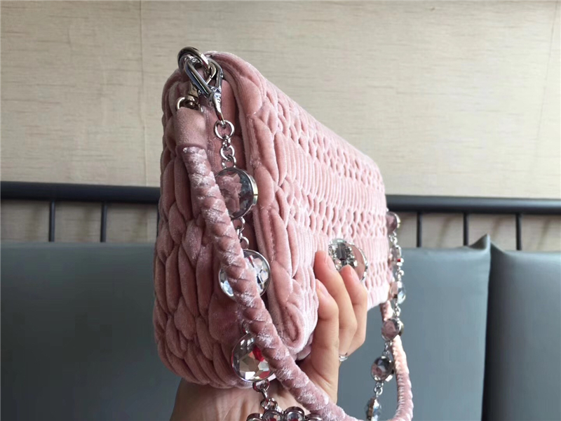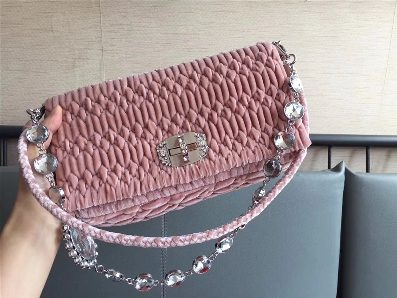 5BD233 MIUMIU缪缪 专柜新款 天鹅绒 仿水晶钻石 链条包 粉色
