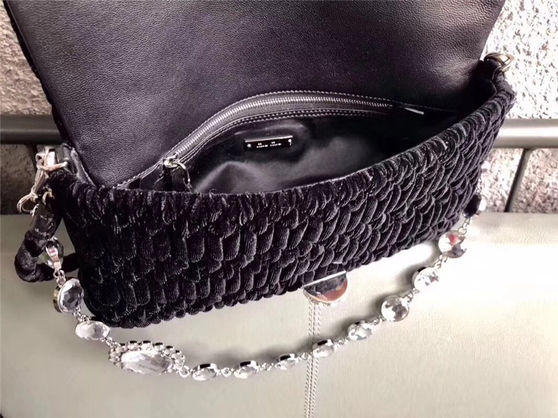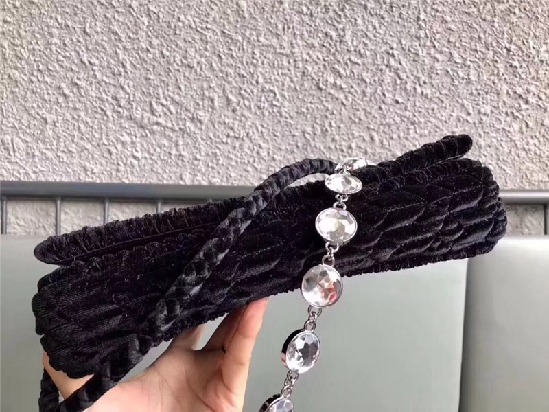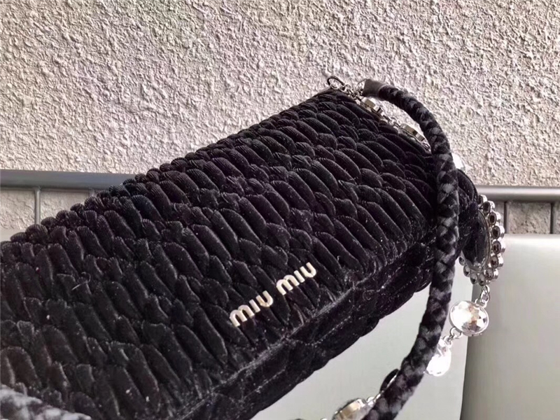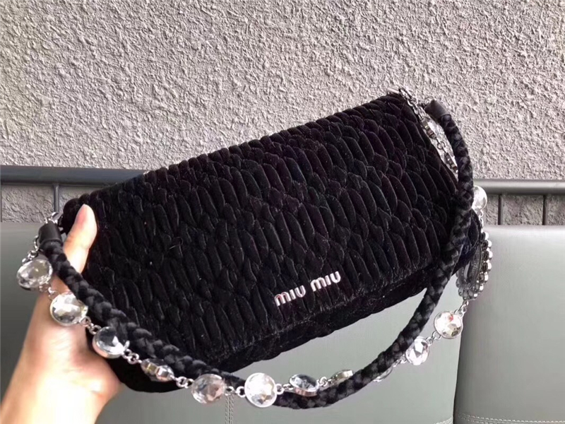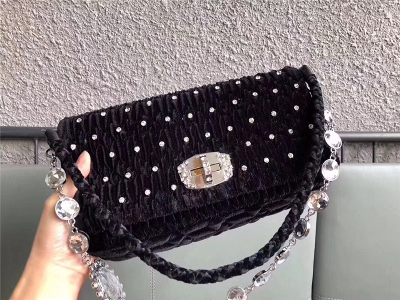 - 5BD233 MIUMIU缪缪 专柜新款 天鹅绒 仿水晶钻石 链条包 黑色
