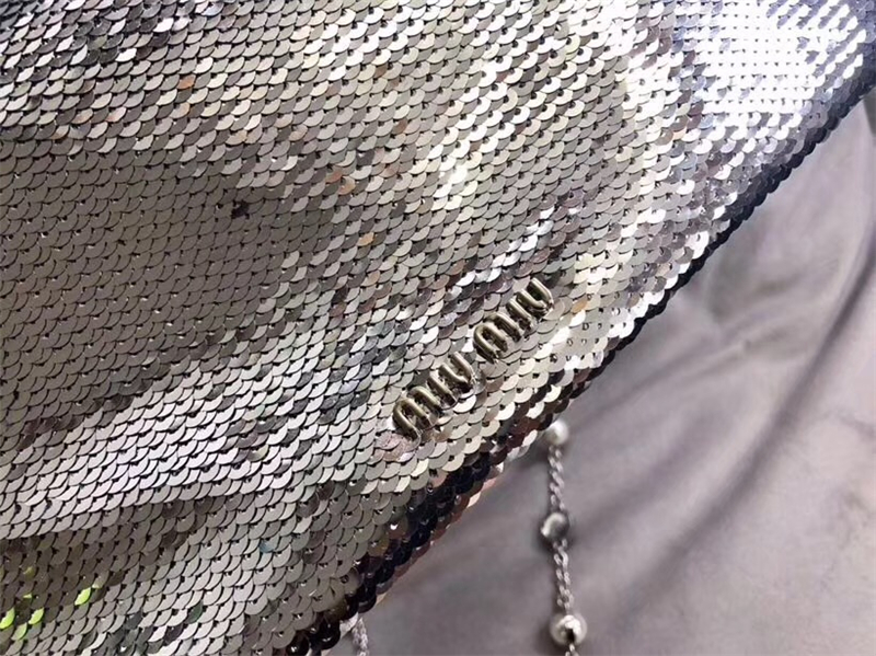 • 5BD233 MIUMIU 专柜新款 手工珠刺绣 亮片钻石链条包 银色