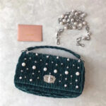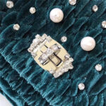 5BD417 MIUMIU缪缪 专柜新款 天鹅绒 珍珠水钻 链条包 墨绿色