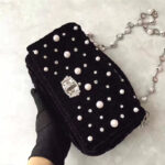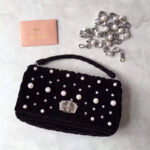 5BD417 MIUMIU缪缪 专柜新款 天鹅绒 珍珠水钻 链条包 黑色