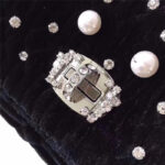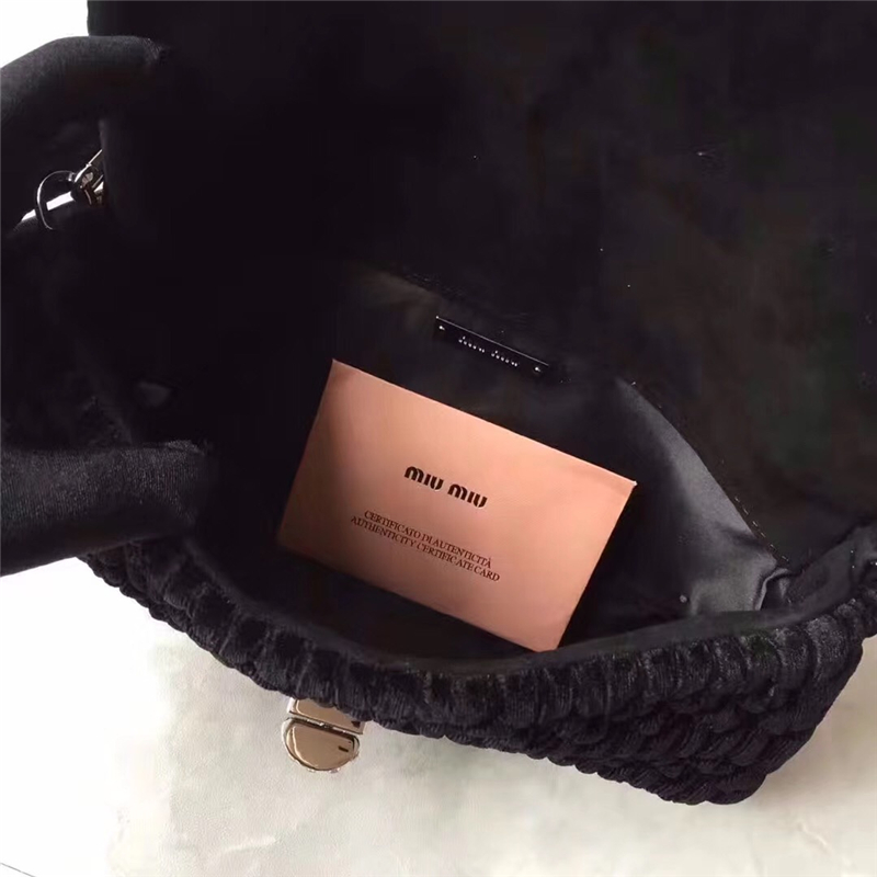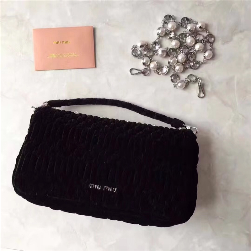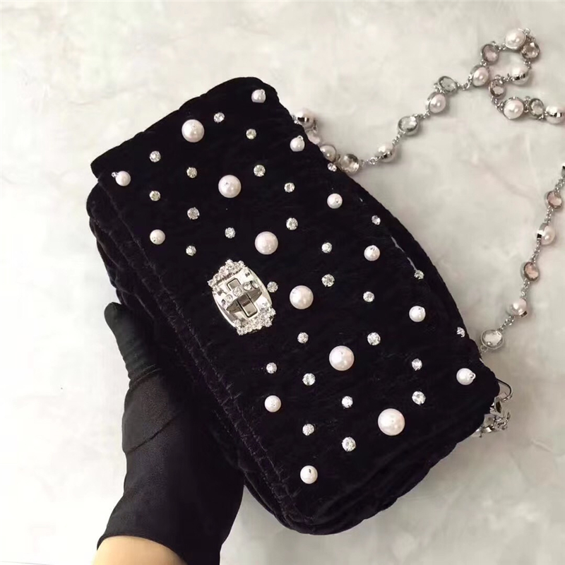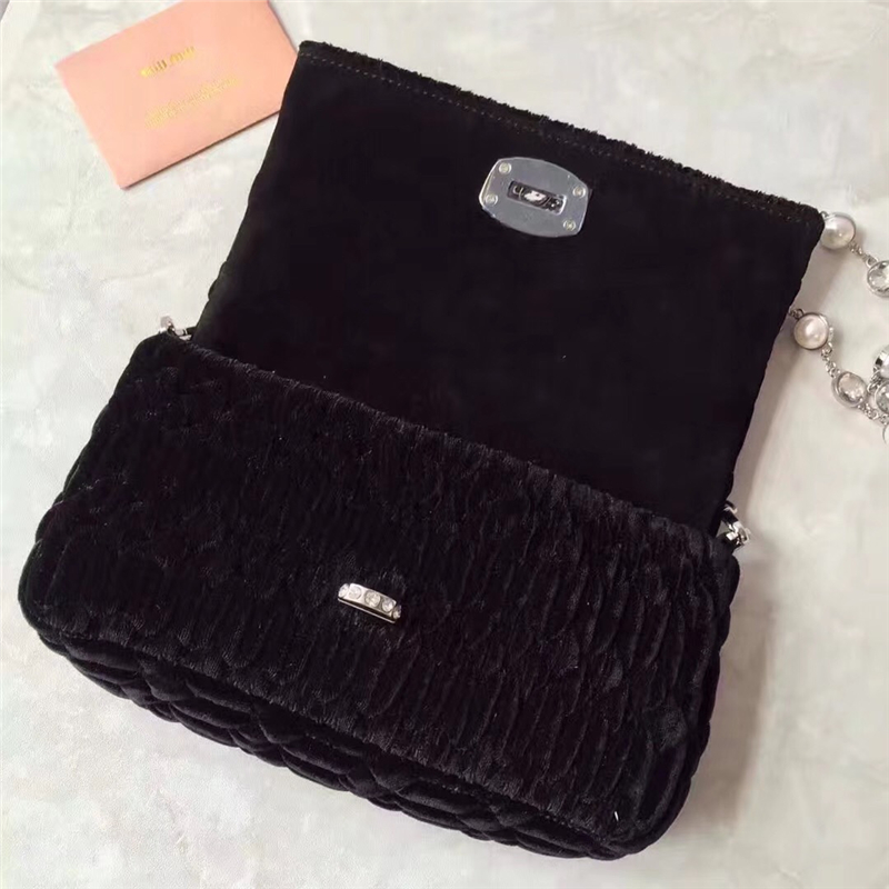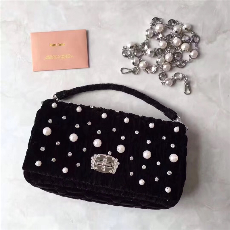 - 5BD417 MIUMIU缪缪 专柜新款 天鹅绒 珍珠水钻 链条包 黑色