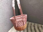 - 5BE021 MIUMIU专柜新款肩背包 小羊皮 编织柳条 桶形包 粉色