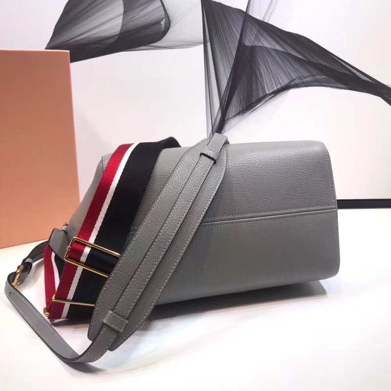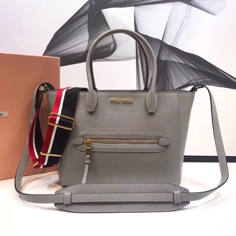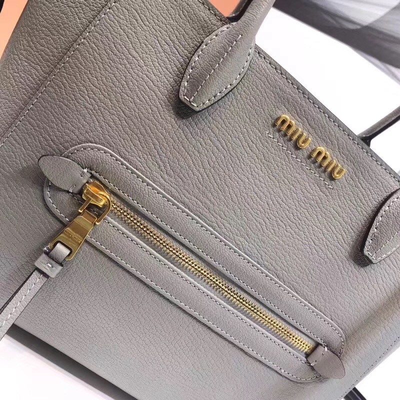 - 5BG137 MIUMIU专柜新款蝙蝠包 山羊皮 双提手 单肩斜跨包 灰色