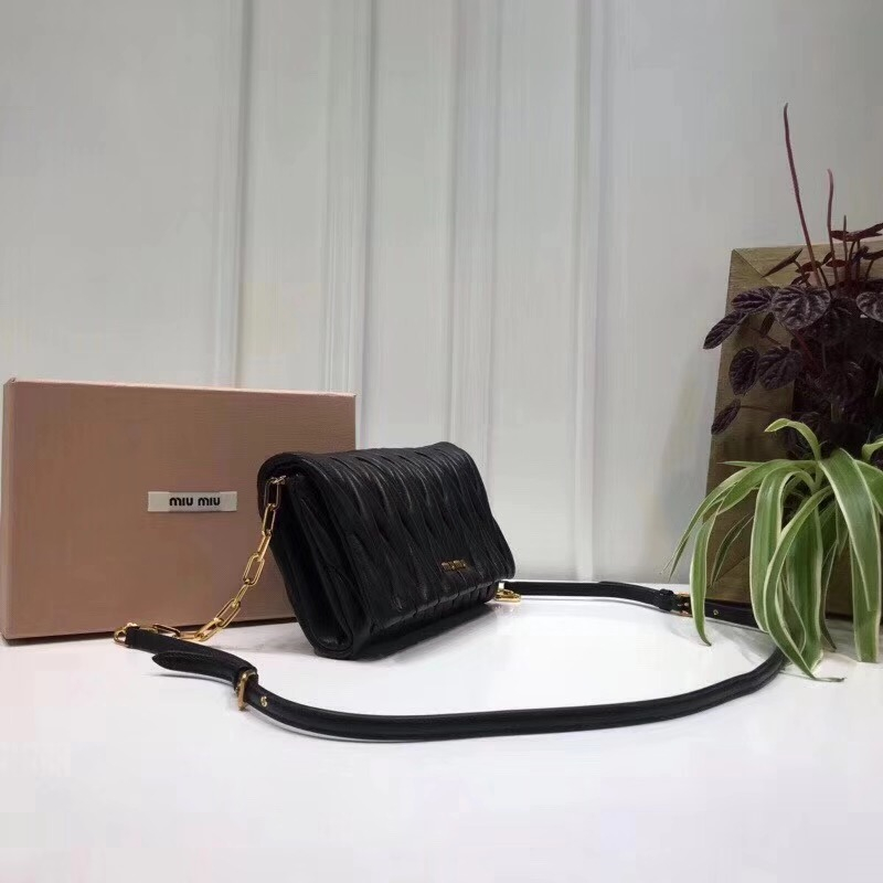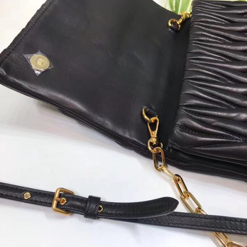 5BH017 MIUMIU缪缪 专柜新款 羊皮提花凸纹 翻盖包袋 黑色