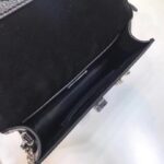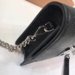 - 结构:翻盖和旋扣扣合,一个内部夹层,三个银行卡槽和一个侧壁缝合口袋,可拆卸链条肩带和皮革肩垫