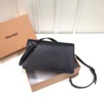 - 5BH077 MIUMIU 专柜新款 进口牛皮 锁扣 大字母 翻盖小包 黑色