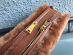 5BH084 MIUMIU缪缪 Big logo 羊羔毛 双拉链 手包斜挎包 棕色