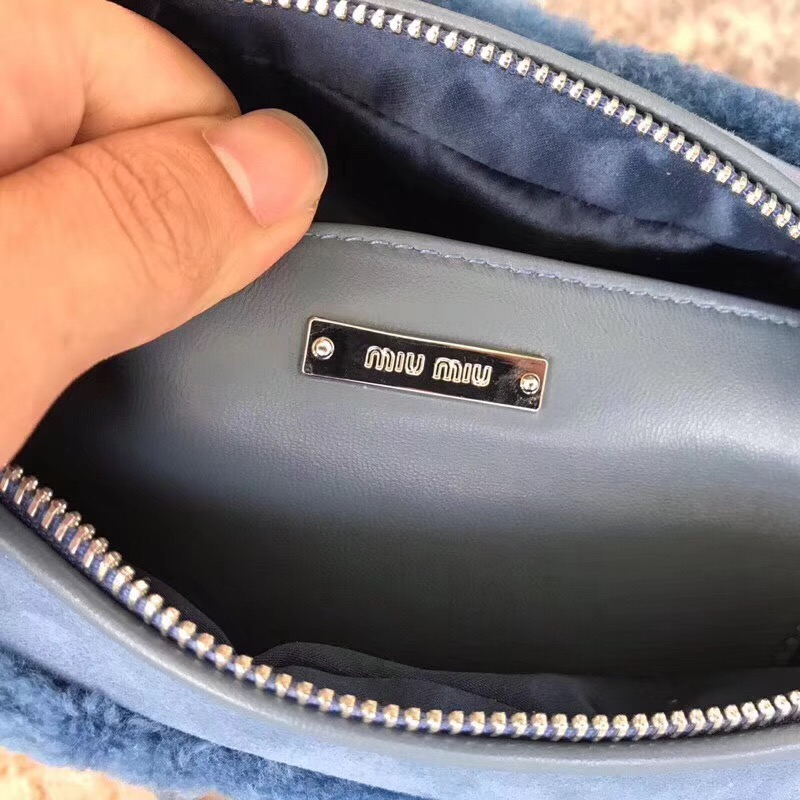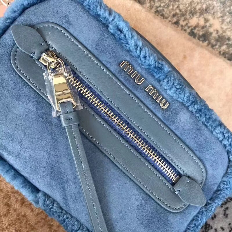 - 5BH118 MIUMIU缪缪 18秋冬 羊绒 时尚百搭 相机包 毛毛小方包 蓝色