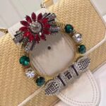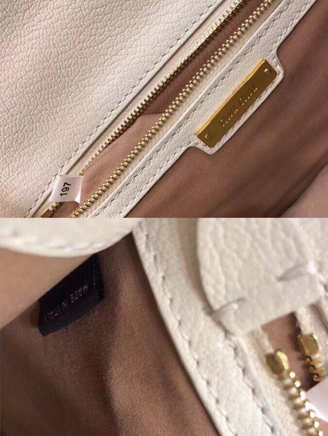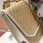 5BH609 MIUMIU专柜新款 仿水晶带扣 草编皮革 翻盖手袋 白色