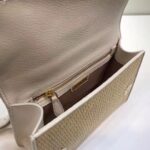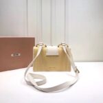 - 5BH609 MIUMIU专柜新款 仿水晶带扣 草编皮革 翻盖手袋 白色