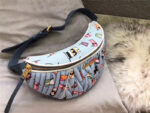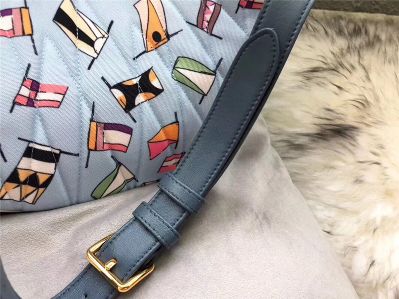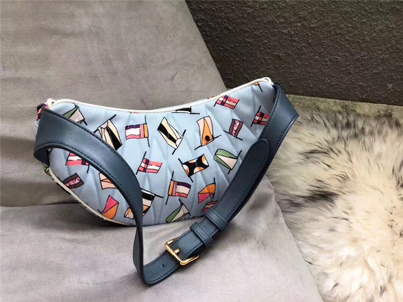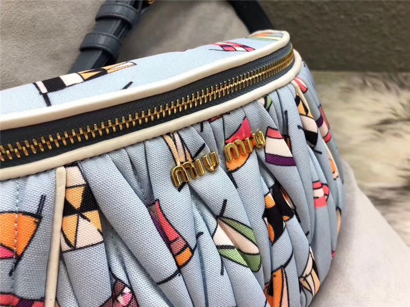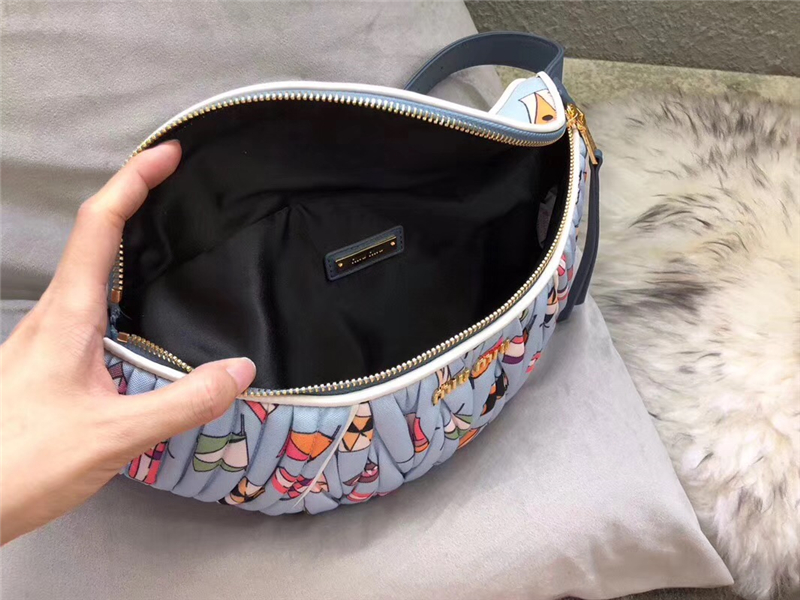 5BL009 MIUMIU缪缪 专柜新款 羊皮褶皱 涂鸦设计 胸包腰包 浅蓝