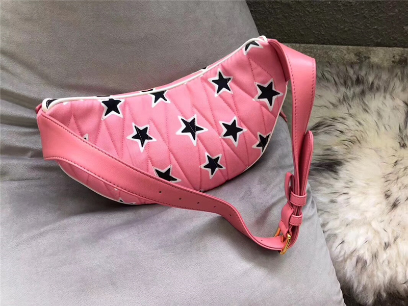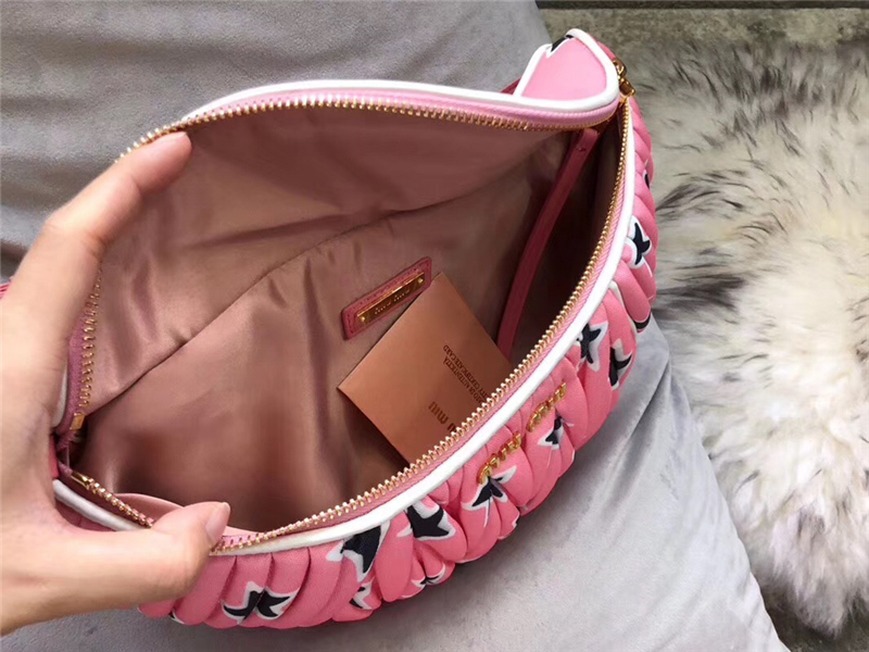 5BL009 MIUMIU缪缪 专柜新款 羊皮褶皱 涂鸦设计 胸包腰包 粉色