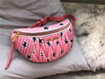 - 5BL009 MIUMIU缪缪 专柜新款 羊皮褶皱 涂鸦设计 胸包腰包 粉色