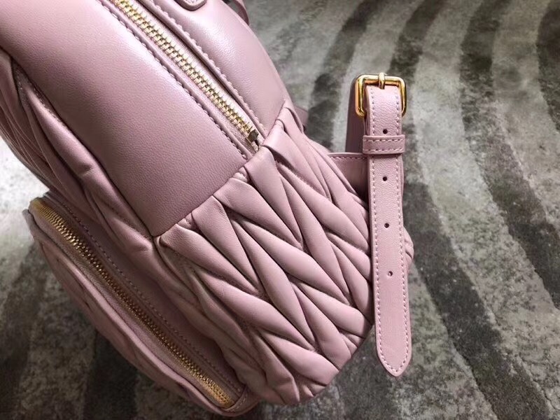 - 5BZ022 MIUMIU缪缪 专柜新款 提花凸纹羊皮 大号双肩包 粉色