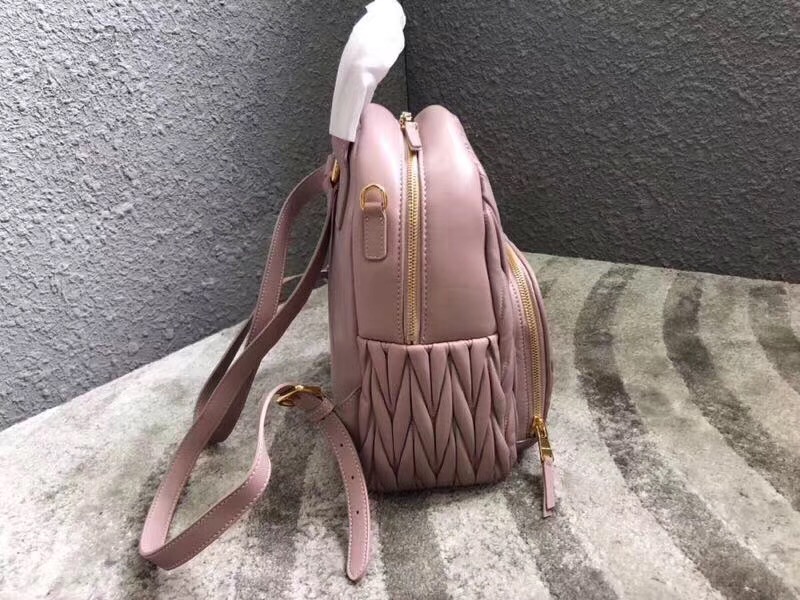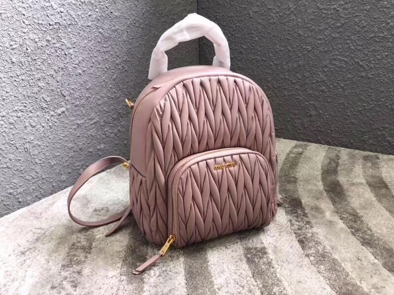 5BZ022 MIUMIU缪缪 专柜新款 提花凸纹羊皮 大号双肩包 粉色