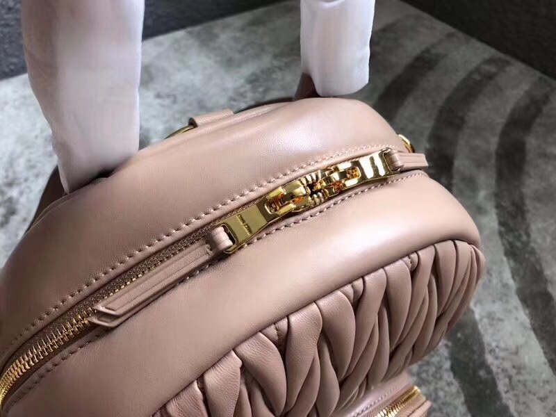 5BZ022 MIUMIU缪缪 专柜新款 提花凸纹羊皮 大号双肩包 豆沙米色