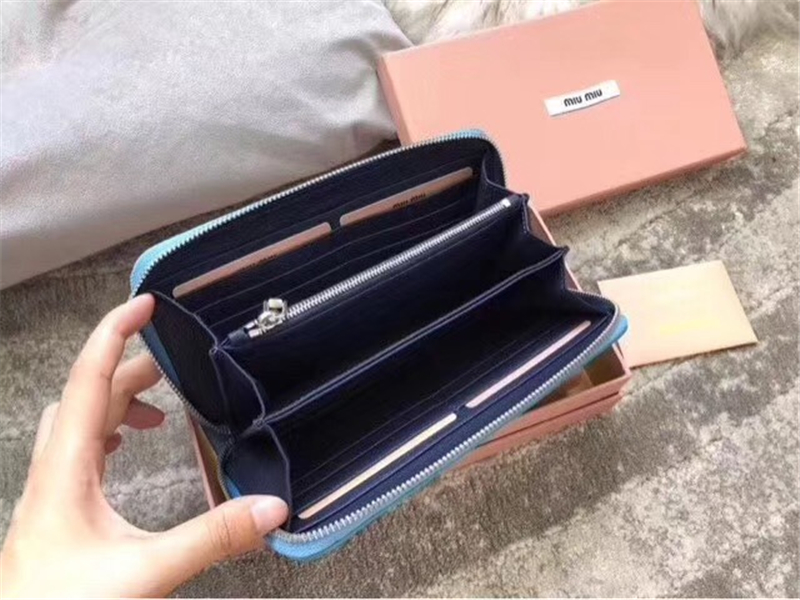 - 5ML506 MIUMIU 专柜最新 山羊皮 大LOGO 拉链钱包 蓝色