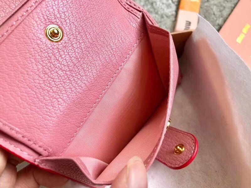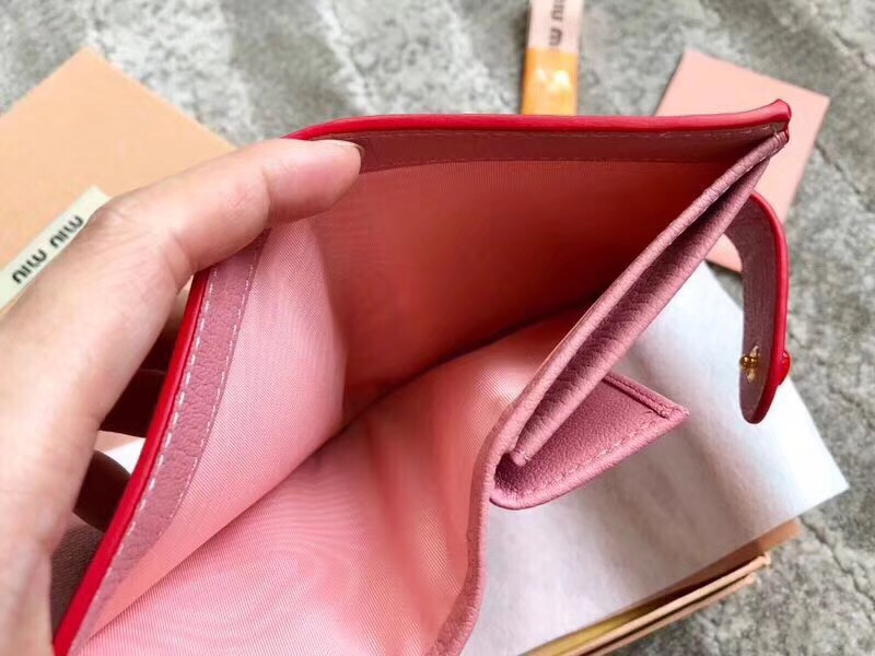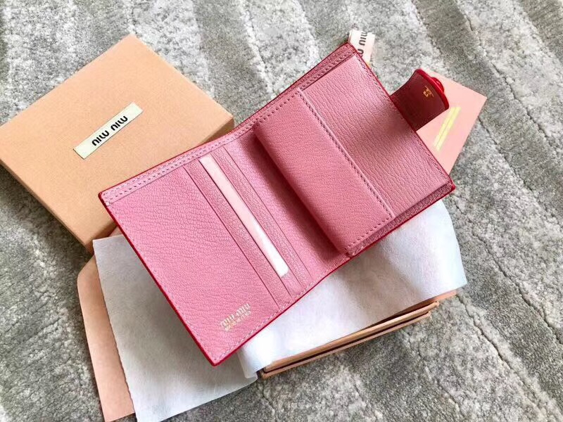 5MV016 MIUMIU 专柜最新 LOVE爱心系列 双色皮革 两折钱夹 粉色